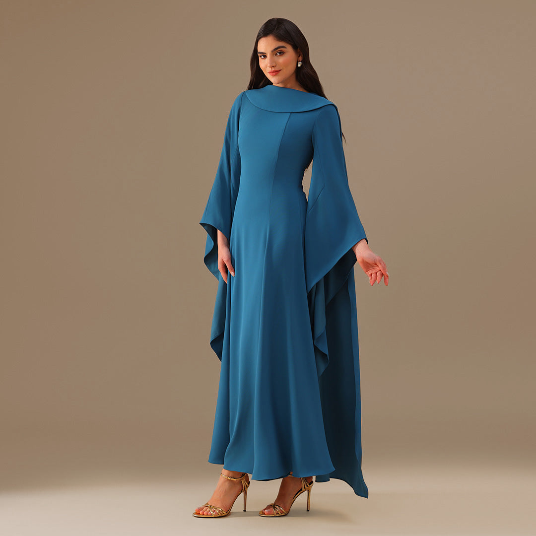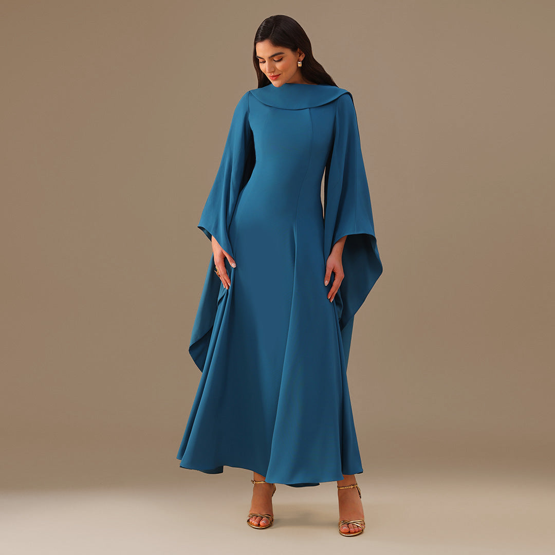 فستان ماكسي بأكمام طويلة مع ثنيات جانبية و قصة غير متناسقة