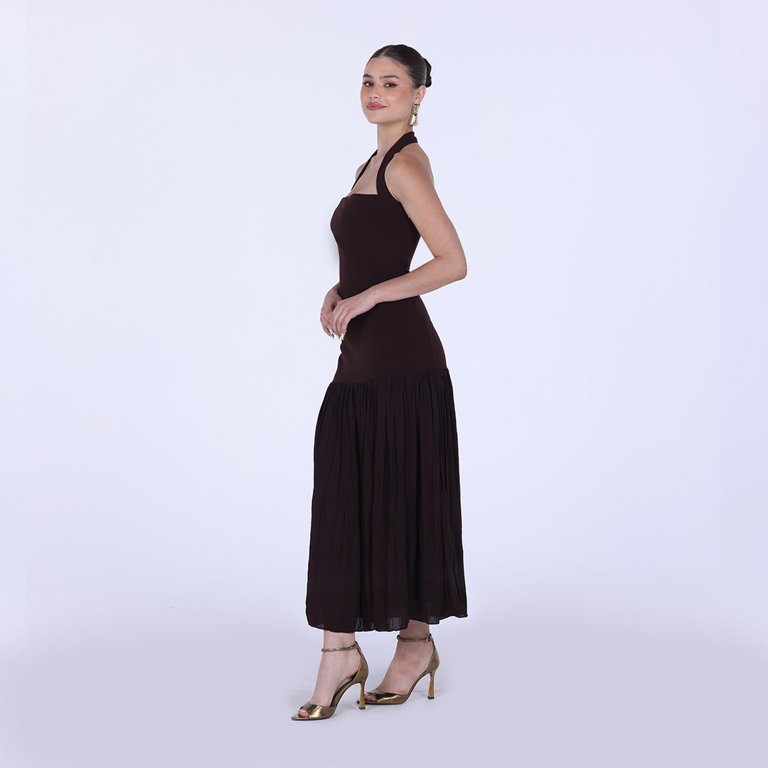 فستان ماكسي مشدود عند الخصر مع كسرات ساتان