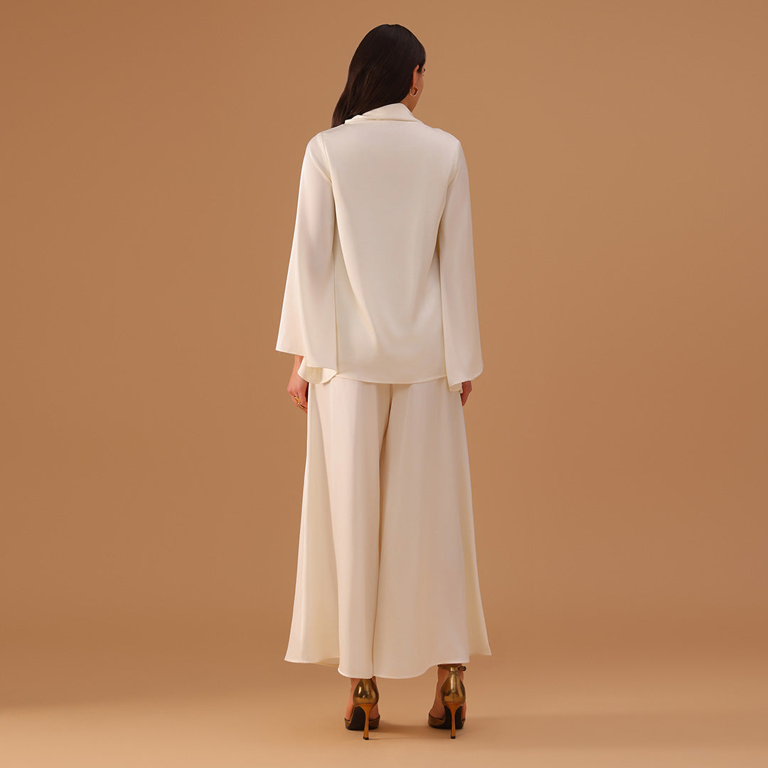 طقم أصفر كتان مخلوط بأكمام طويلة - توب وتنورة