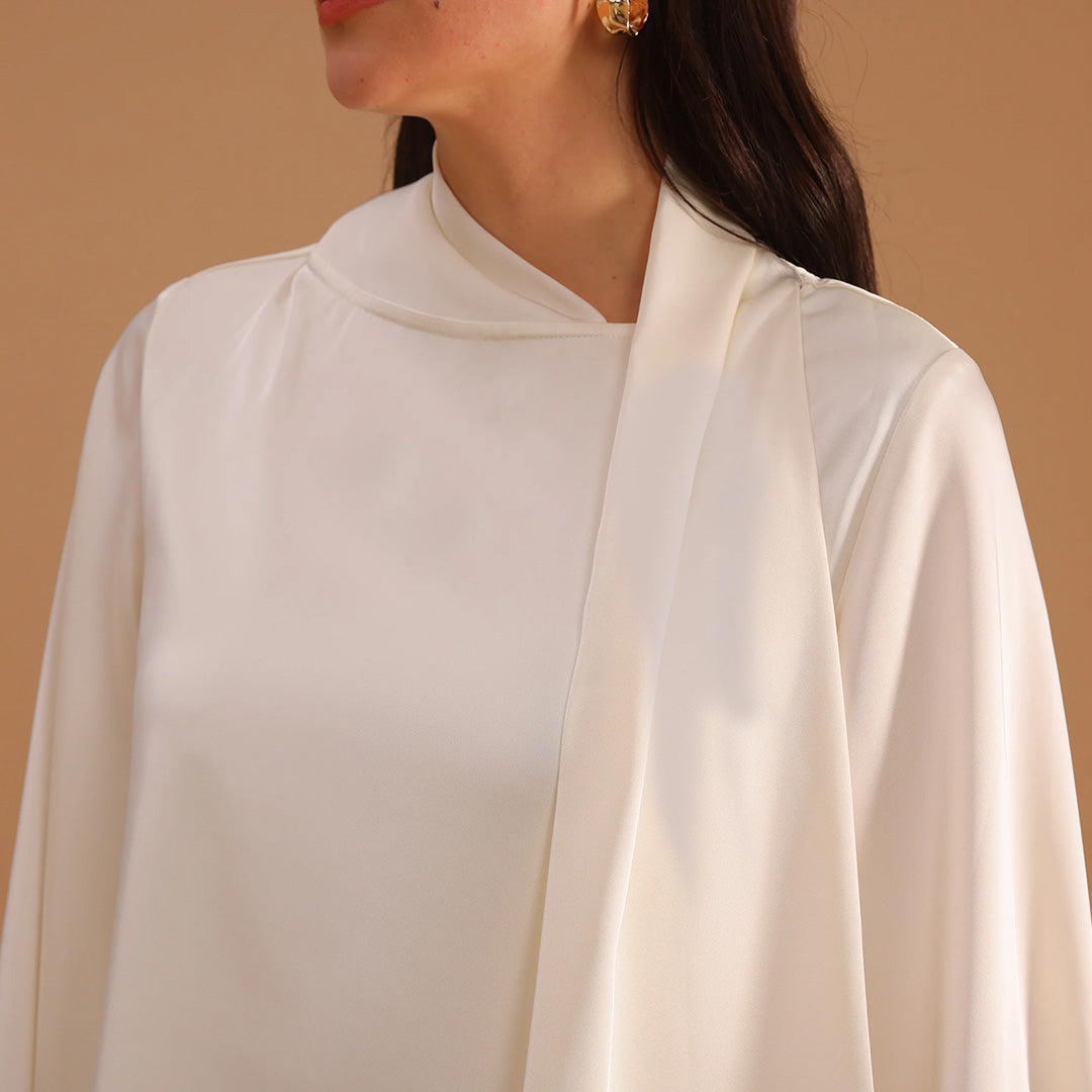 قفطان كريب بأكمام طويلة وبتصميم بدون أكتاف