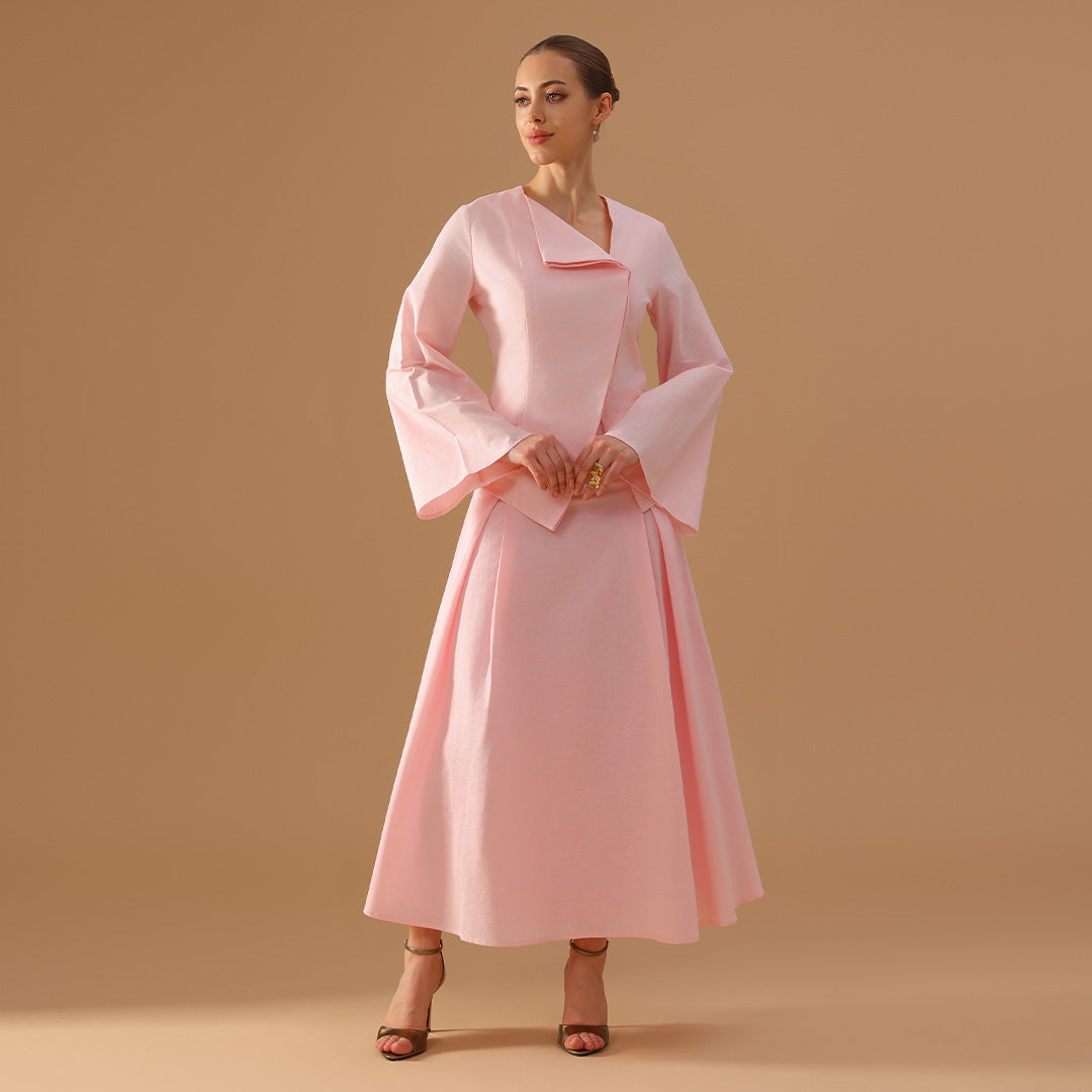 فستان كيب بتدرجات الوردي مع حافة غير متساوية