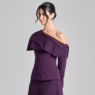 بلوزة بنفسجي بأكمام طويلة مع كتف مكشوف