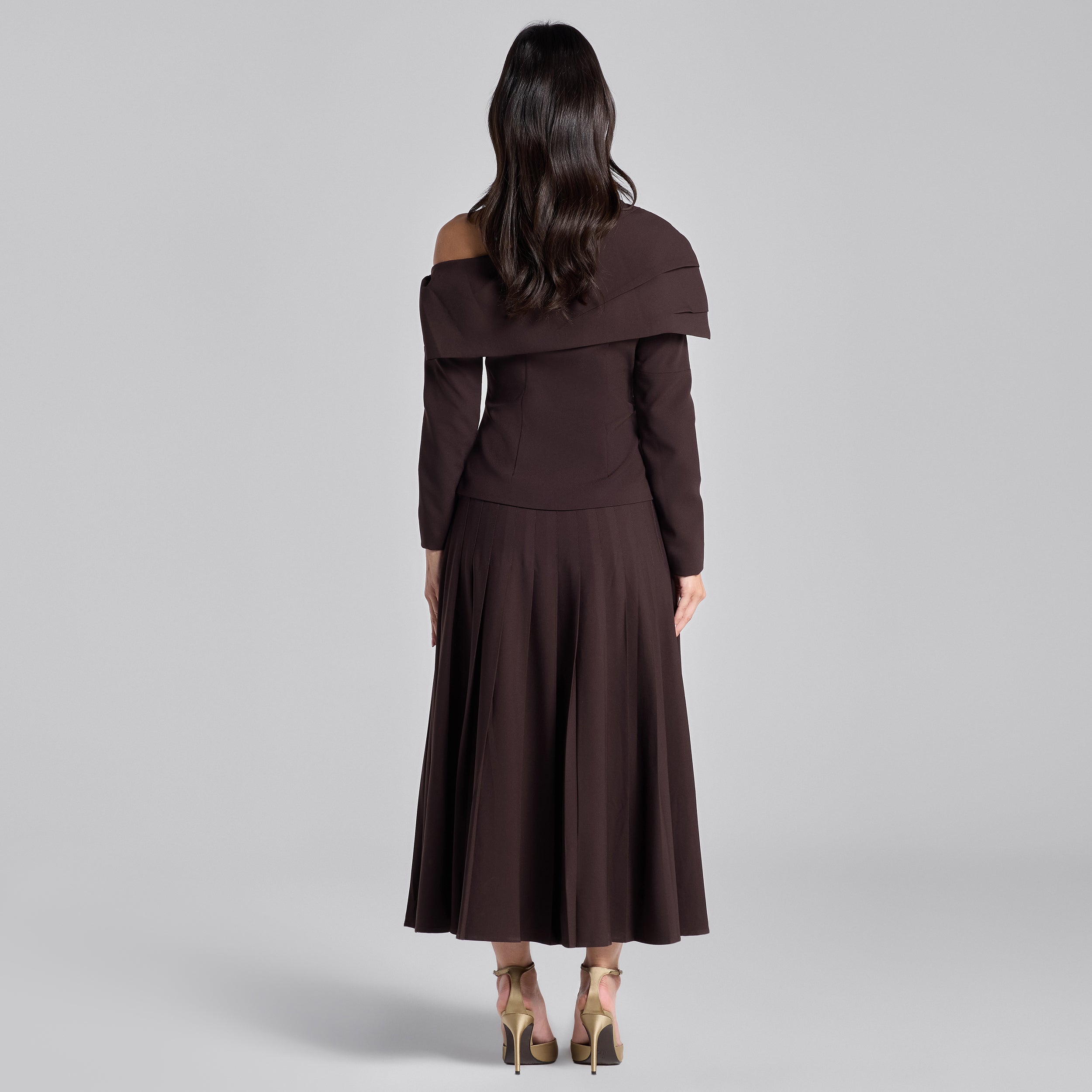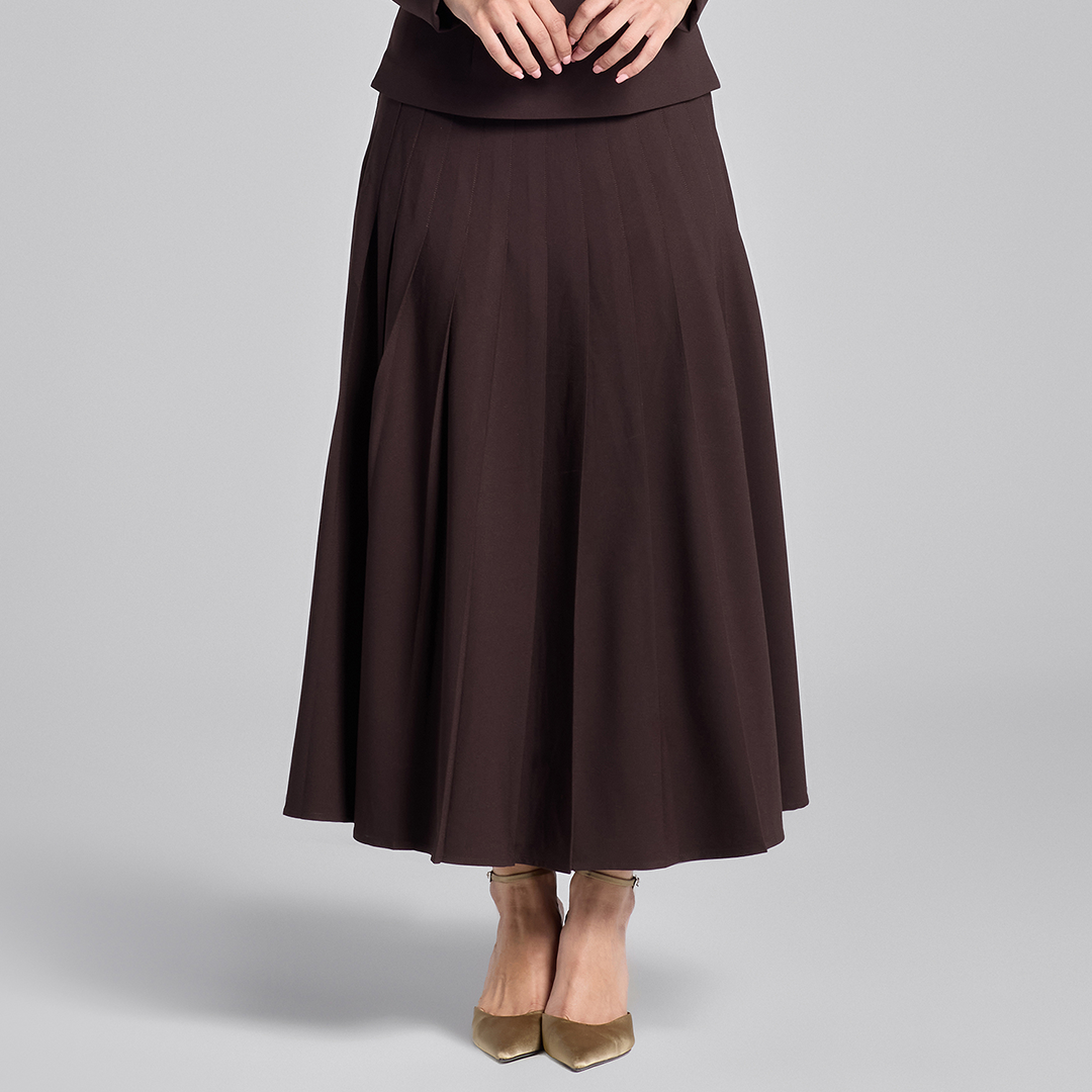 تنورة بني غامق ماكسي كريب بكسرات