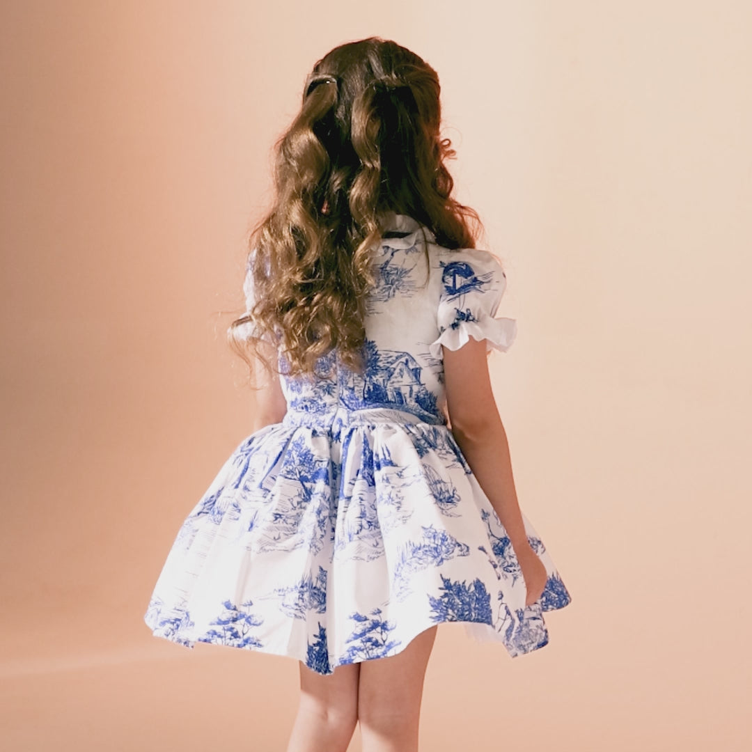 يتميز هذا الفستان بأكمام قصيرة بتصميم أنيق وطبعات فريدة. صنع من القطن الناعم لراحة تدوم طوال اليوم، مما يجعله مزيجاً مثالياً من الراحة والأناقة. مثالي للحفلات والمناسبات الخاصة، ليمنح طفلتك إطلالة ساحرة ومميز