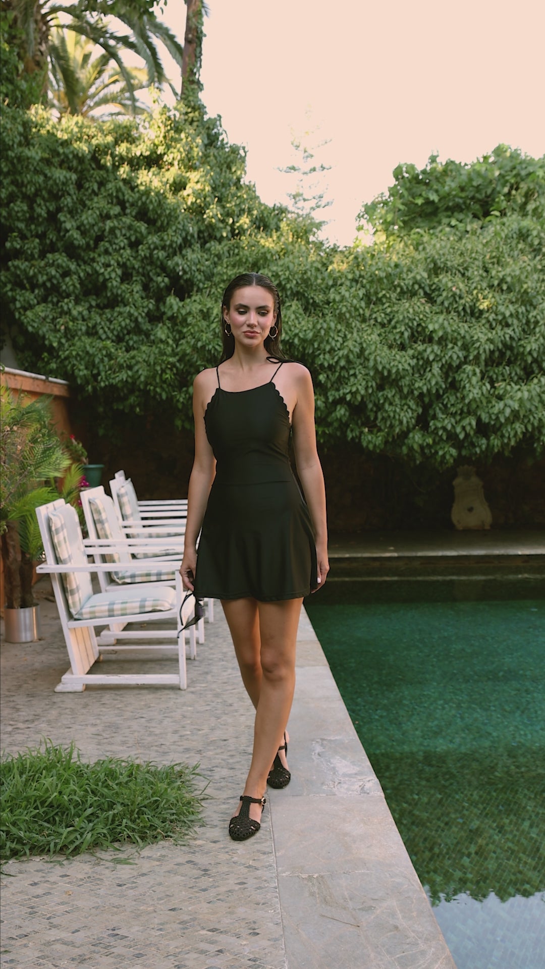 ارتقي بإطلالتك بجانب المسبح مع مايوه سباحة أسود بربطات من الينا. يتميز هذا المايوه بتنورة مصممة بشكل جميل تضيف لمسة من السحر الأنيق. وتوفر لكِ الربطات القابلة للتعديل ملاءمة مريحة ومظهر جميل، مما يتيح لكِ التألق أثناء الاسترخاء بجانب المسبح.