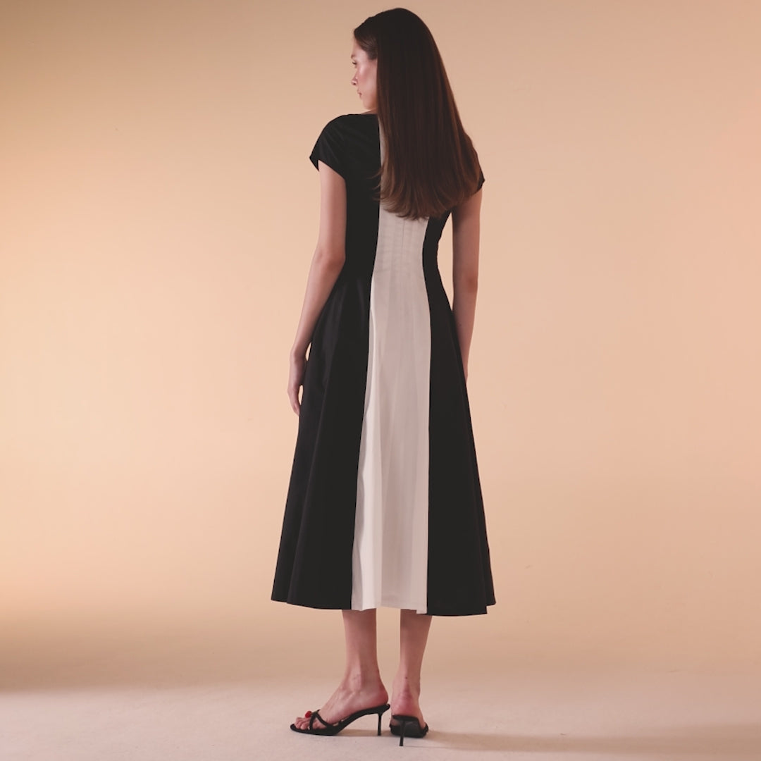 هذا الفستان ذو الأكمام القصيرة والخصر المناسب على شكل حرف A ينضح بالأناقة بخصره المجهز والصورة الظلية على شكل حرف A. مزيج من الأبيض والأسود يخلق نظرة خالدة ومتطورة. مثالي لأي مناسبة، هذا الفستان سيجعلك مميزًا وتشعر بالثقة.