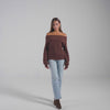 سويتر تريكو بني كتف مكشوف مطوي بأكمام بالون