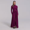 يمنحكِ هذا الفستان مظهراً أنيقاً بلمسة عصرية. يأتي بياقة مائلة تبرز جمال الرقبة، وتفاصيل ملتفة على الخصر تحدد القوام من دون شعور بالضيق. يتميز الفستان بأكمام طويلة وتصميم انسيابي مريح ما يجعله خيار عملي ومناسب لعشاء رسمي أو حفل زفاف أو سهرة مسائية.