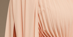 فستان شيفون بليسيه بقصة A، يتميز بأكمام كاب بفتحات تمتد إلى وشاحين في الخلف ينسدلان من ياقة عالية. يوفر التصميم حرية في الحركة، لكن إلى جانب كونه مريح، فهو غني بتفاصيل أنيقة كفيلة بجعلك محط أنظار الجميع.