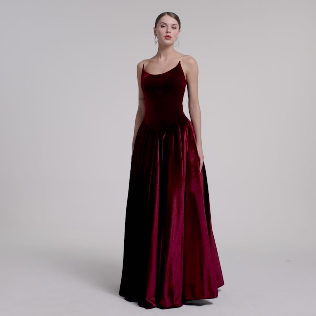 فستان كورسيه مخمل عنابي طويل بدون حمالات