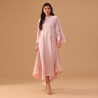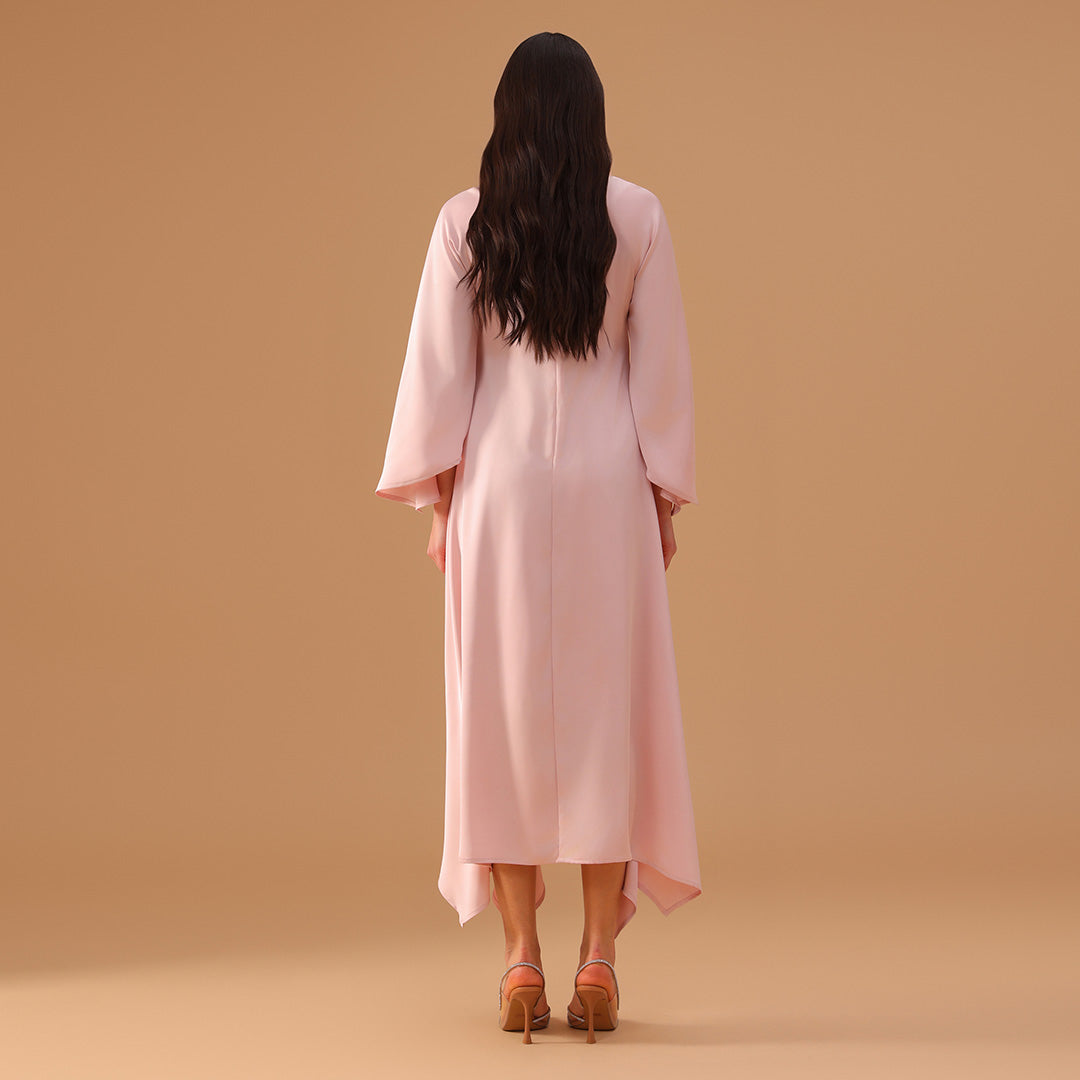 فستان كيب بتدرجات الوردي مع حافة غير متساوية