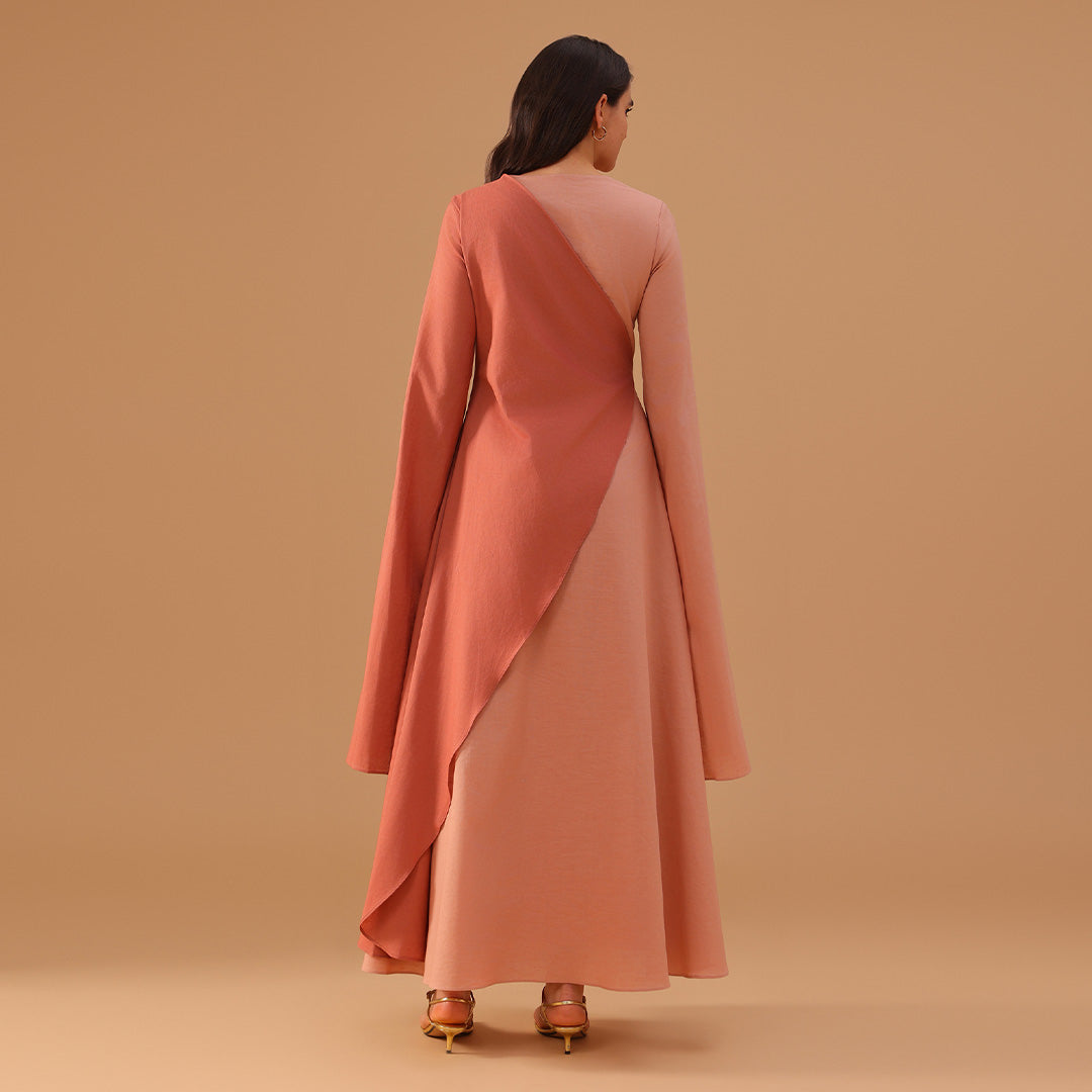 فستان ميدي بياقة درابية وحاشية غير متساوية