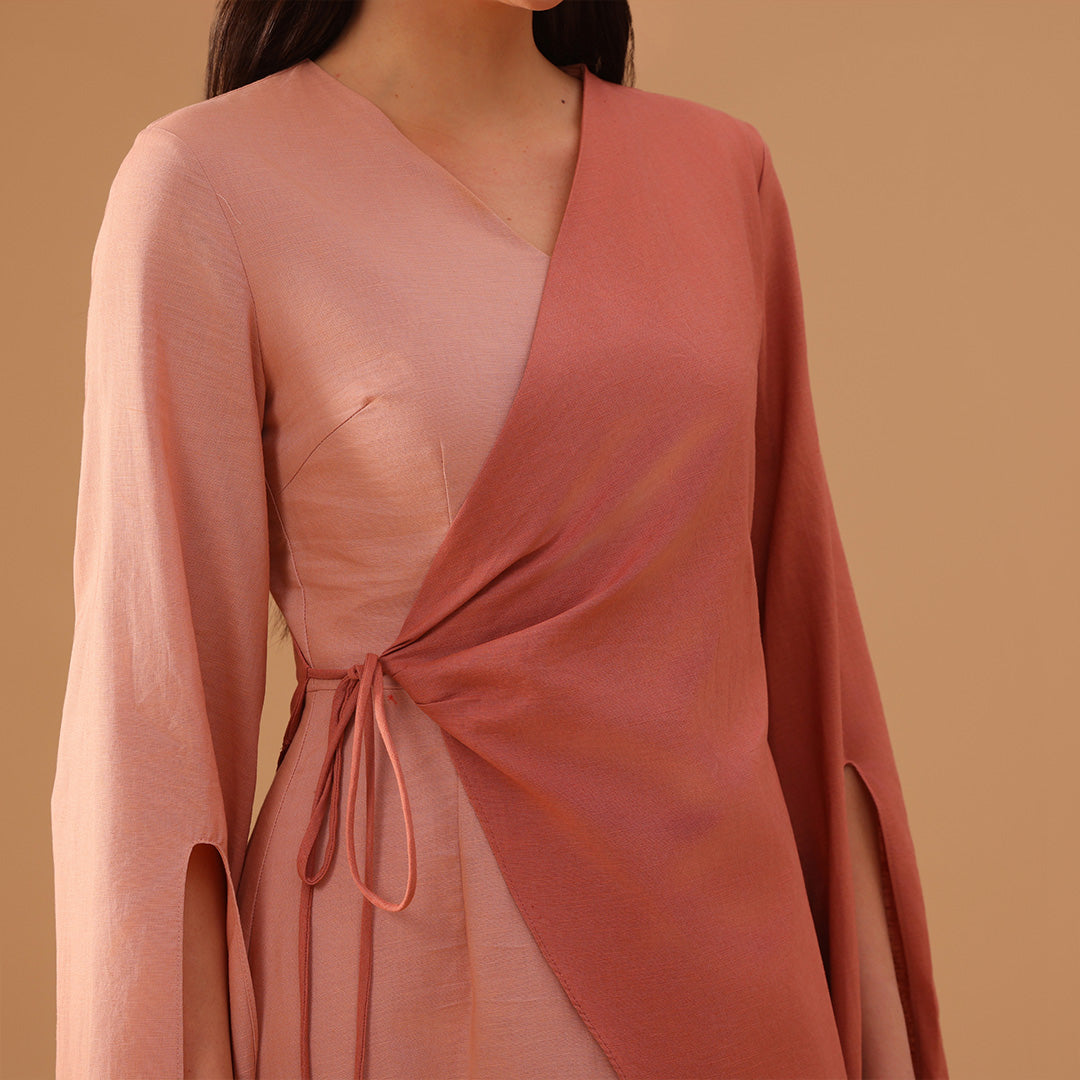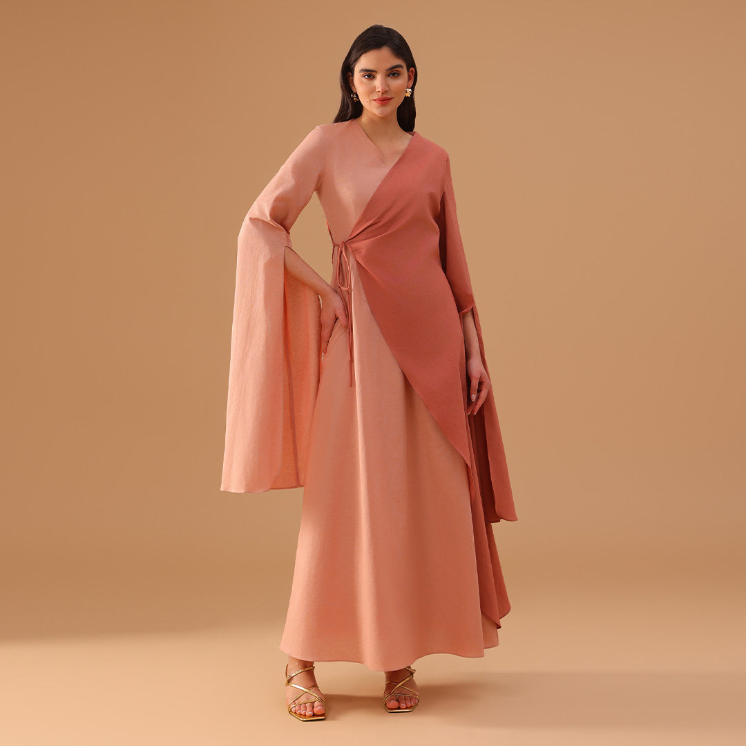 فستان كريب بطيّة عند الصدر وأكمام طويلة