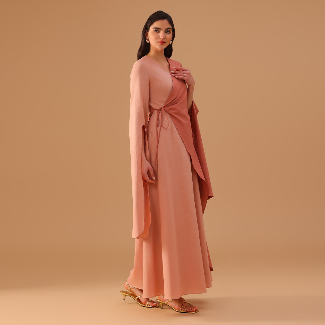 قفطان كريب بأكمام طويلة وبتصميم بدون أكتاف