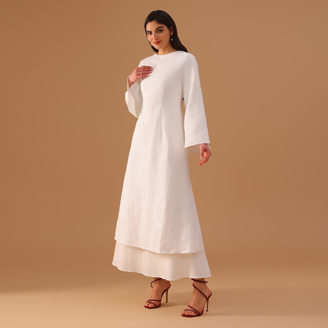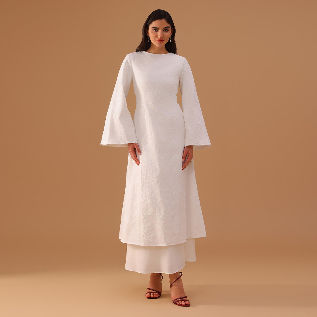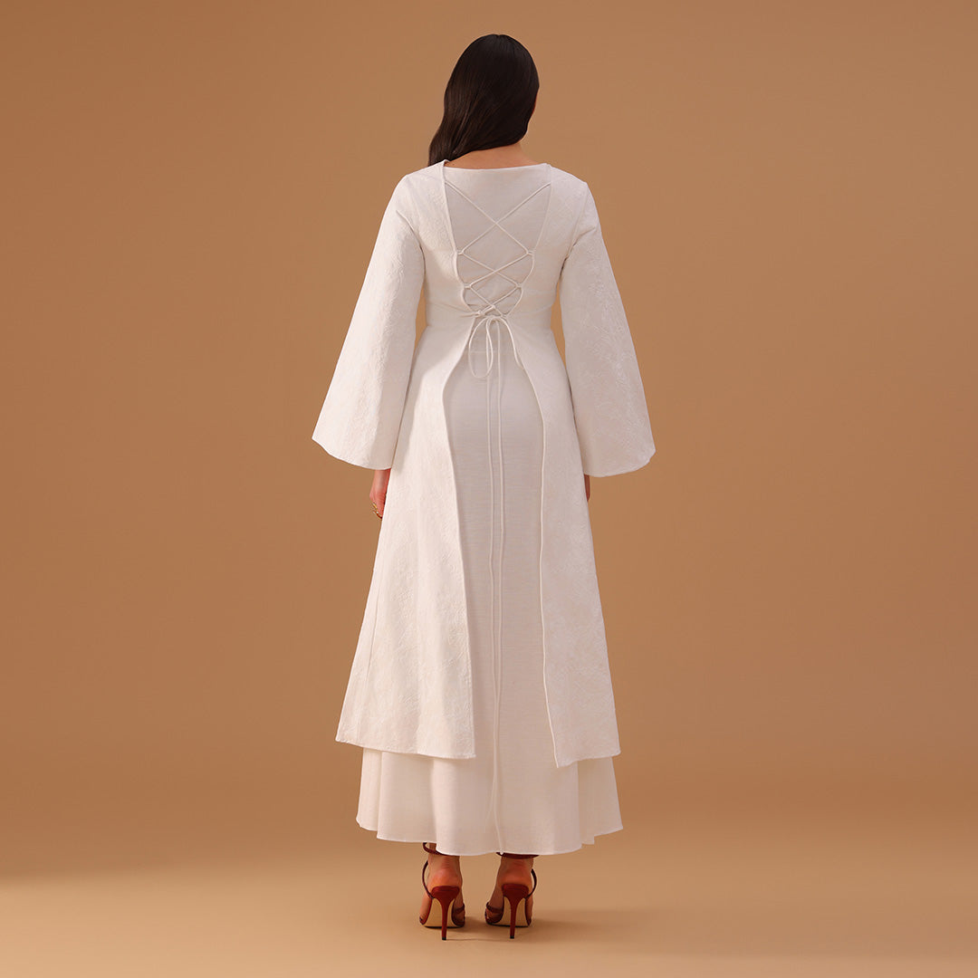 فستان ماكسي بكتف مكشوف وأكمام منسدلة
