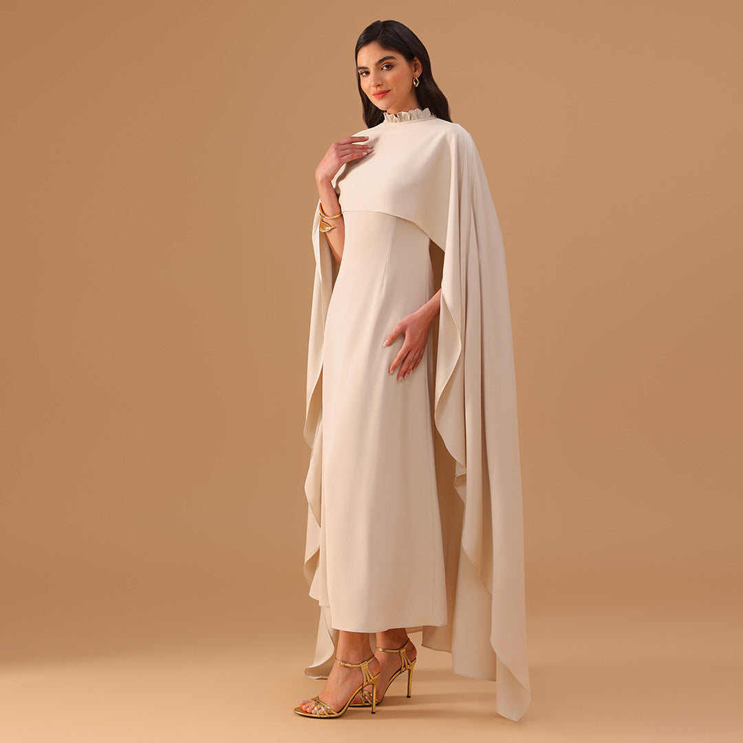 فستان كيب بتدرجات الأخضر مع حافة غير متساوية
