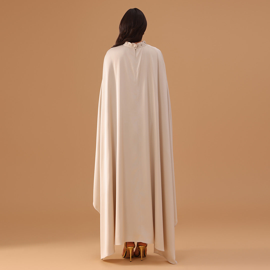 قفطان أخضر زيتي ساتان بليسيه بأكمام كاب