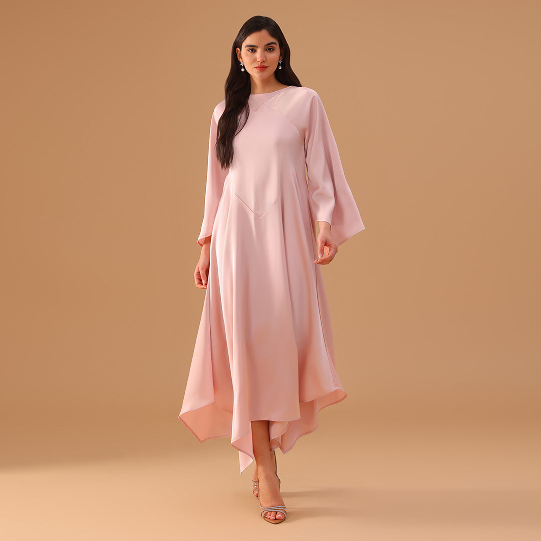 فستان كيب بتدرجات الوردي مع حافة غير متساوية