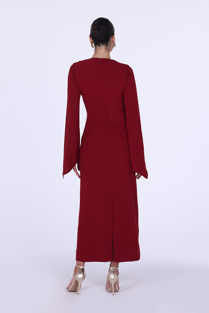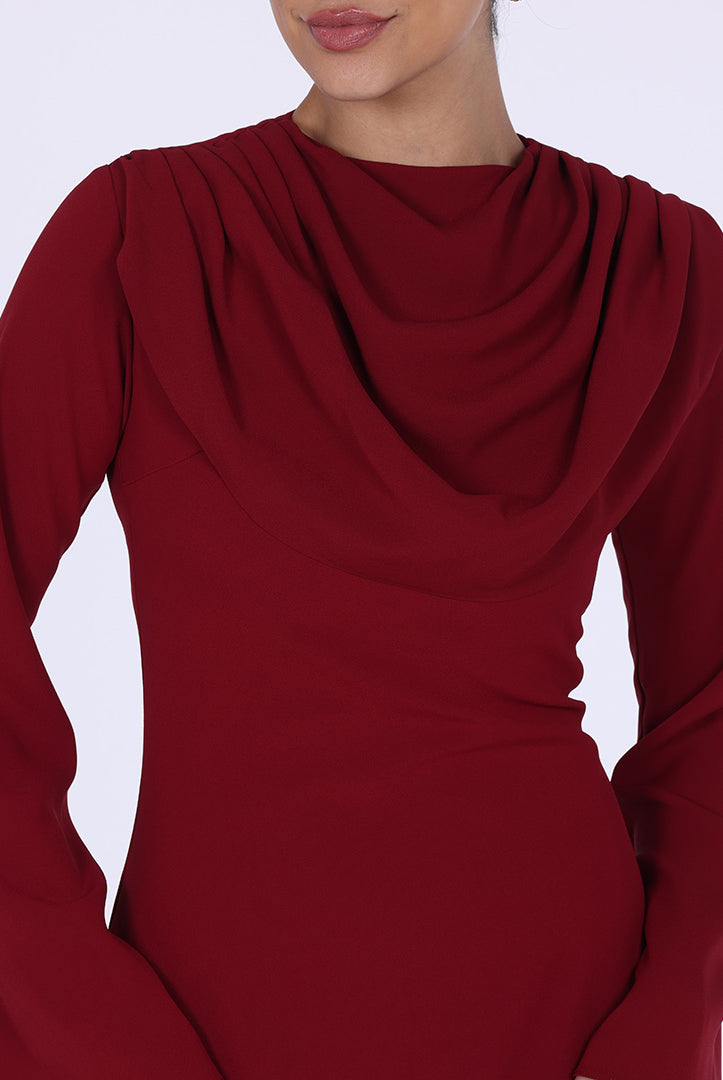 فستان كريب بطيّة عند الصدر وأكمام طويلة
