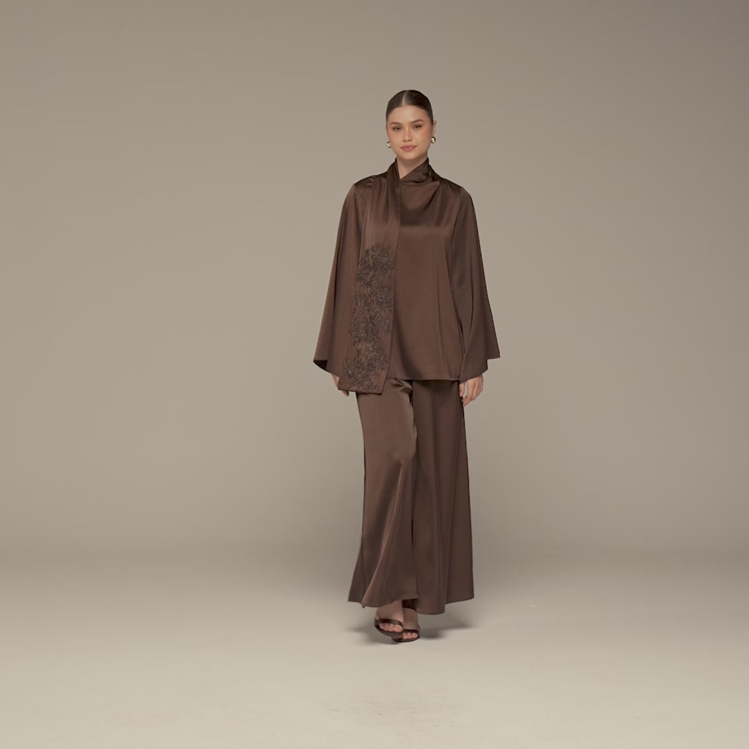 بنطلون بني ساتان بقصة واسعة