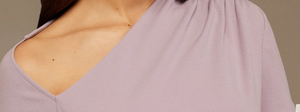 فستان ميدي كريب بتصميم يركز على التباين، من ياقة الكتف المكشوفة إلى الحافة غير المتماثلة. أحد الأكمام مكشوف بينما الآخر يأتي بتفاصيل مزمومة تضيف بُعدًا فريد للتصميم. تنسدل التنورة الواسعة بانسيابية، ويجمّل الخصر المحدد القوام دون أن يقيد الحركة.
