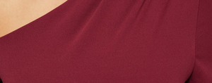 فستان ميدي كريب بتصميم يركز على التباين، من ياقة الكتف المكشوفة إلى الحافة غير المتماثلة. أحد الأكمام مكشوف بينما الآخر يأتي بتفاصيل مزمومة تضيف بُعدًا فريد للتصميم. تنسدل التنورة الواسعة بانسيابية، ويجمّل الخصر المحدد القوام دون أن يقيد الحركة.