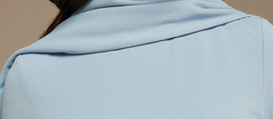 فستان ميدي كريب بقصة خصر مزموم تحدد القوام بشكل أنثوي بدون ضيق. يلتف وشاح ناعم حول الياقة وينسدل من الخلف ليضيف حركة ناعمة ولمسة ملفتة بدون مبالغة، ويكتمل التصميم بأكمام واسعة تعطي توازنًا وجمالًا مع كل حركة..