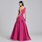 فستان سهرة وردي كتف واحد بثنيات