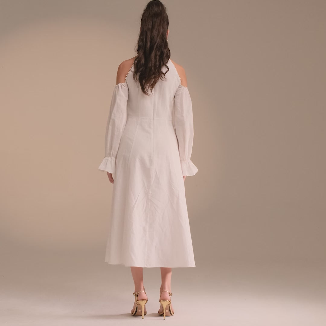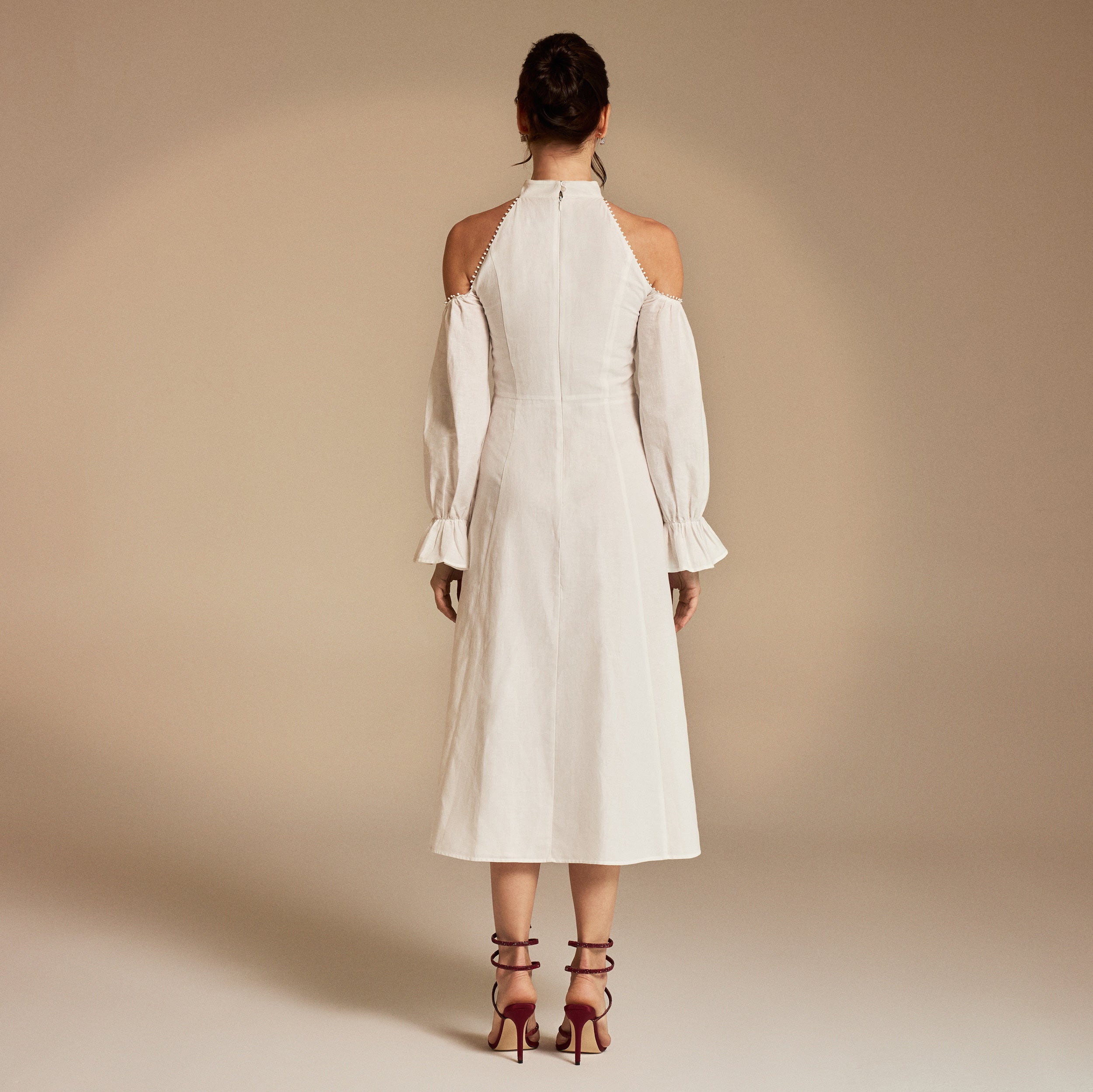 فستان اوف وايت ميدي طويل بأكتاف مكشوفة