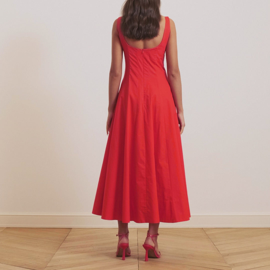 فستان قطني متوسط الطول بخصر ضيق وقصة A