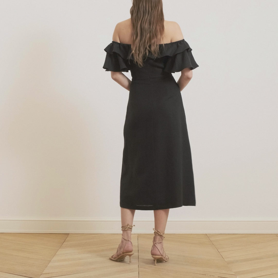 تبحثين عن فستان يلائم أي مناسبة، إليكِ فستان الينا الأنيق بأكتافه المكشوفة وقصة ياقته الجميلة. اختاري لونك المفضل ونسقيه مع صندل مفتوح أو صندل بربطات حول الكاحل لإطلالة صيفية مريحة.