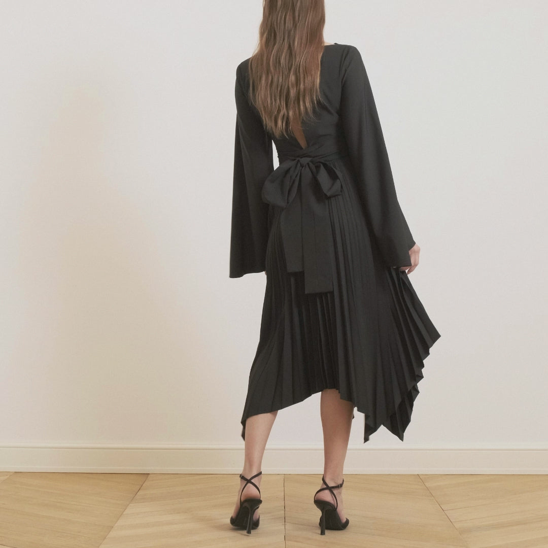 فستان بتصميم لف طويل الكم متوسط الطول