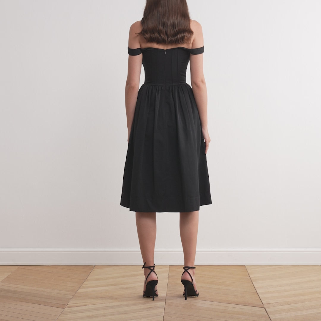 فستان كورسيه متوسط الطول مكشوف الكتفين