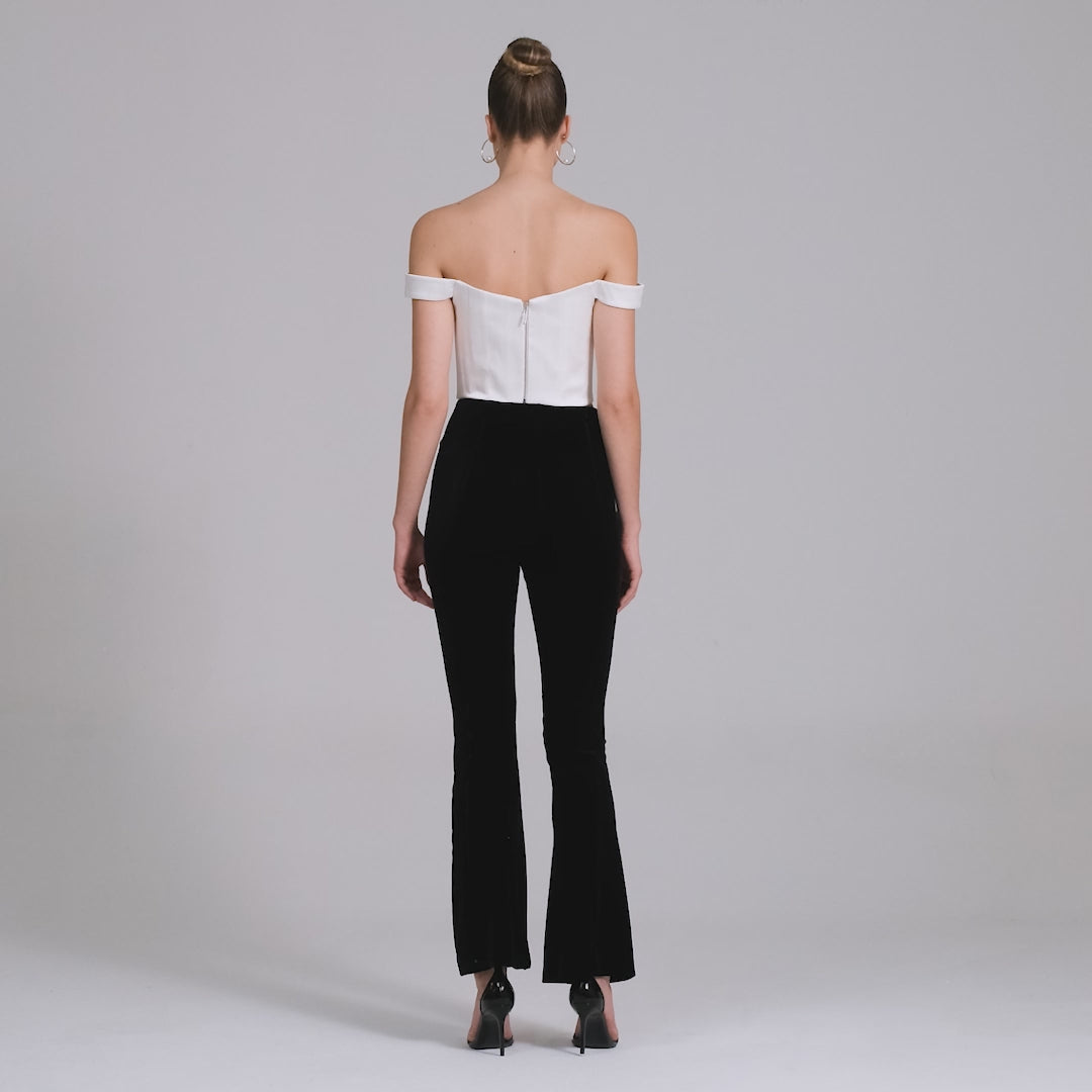 يتميز هذا البنطلون المخملي المتوهج بخصر عالٍ لملاءمة جذابة للغاية وأناقة مكملة. استمتع بالفخامة في قماشها الناعم، مما يجعلها القطعة الفاخرة المثالية لخزانة ملابسك.