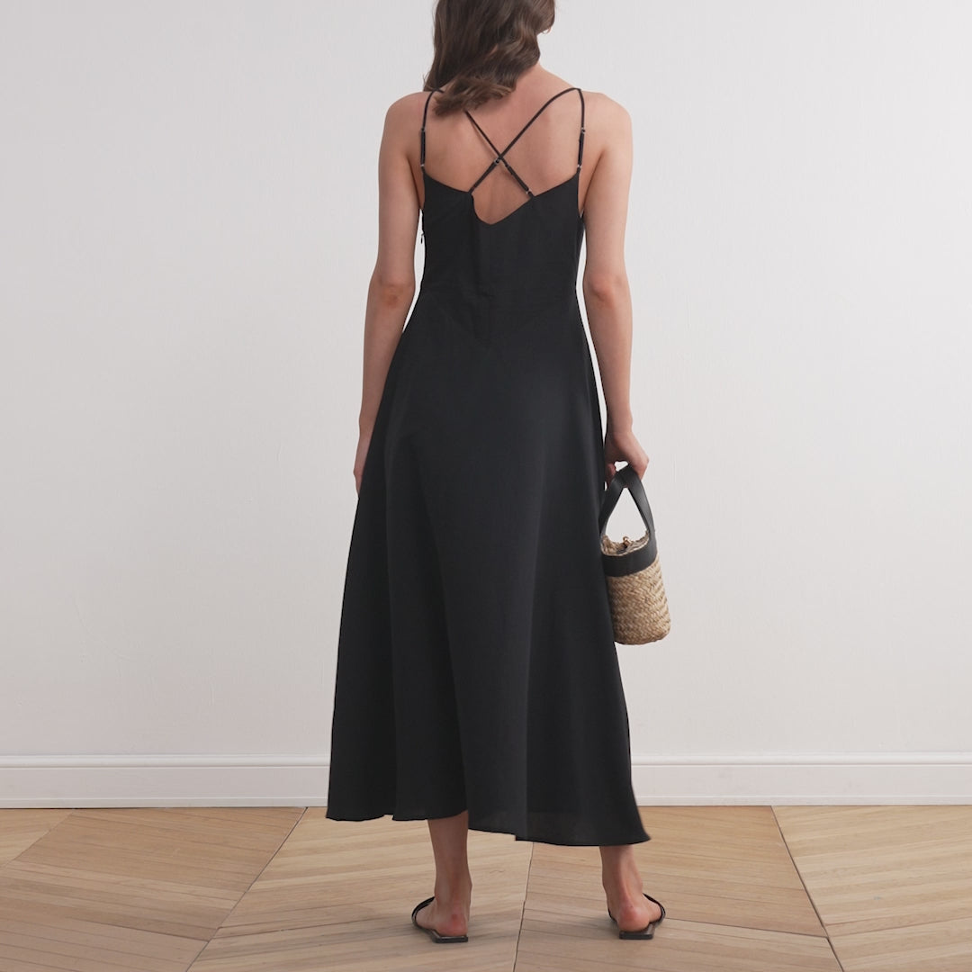 يجسد فستان الينا متوسط الطول هذا النمط الكلاسيكي في قالب عصري أنيق. يأتي الفستان بخصر ضيق ينساب بعده الفستان في قصة مريحة، لكن جماله يبرز في الجزء العلوي مع ياقة V وحمالات رفيعة وبعض الأزرار الصغيرة على الصدر. نسقيه مع صندل جلد او حذاء كعب واستعدي لخطف الأنظار!