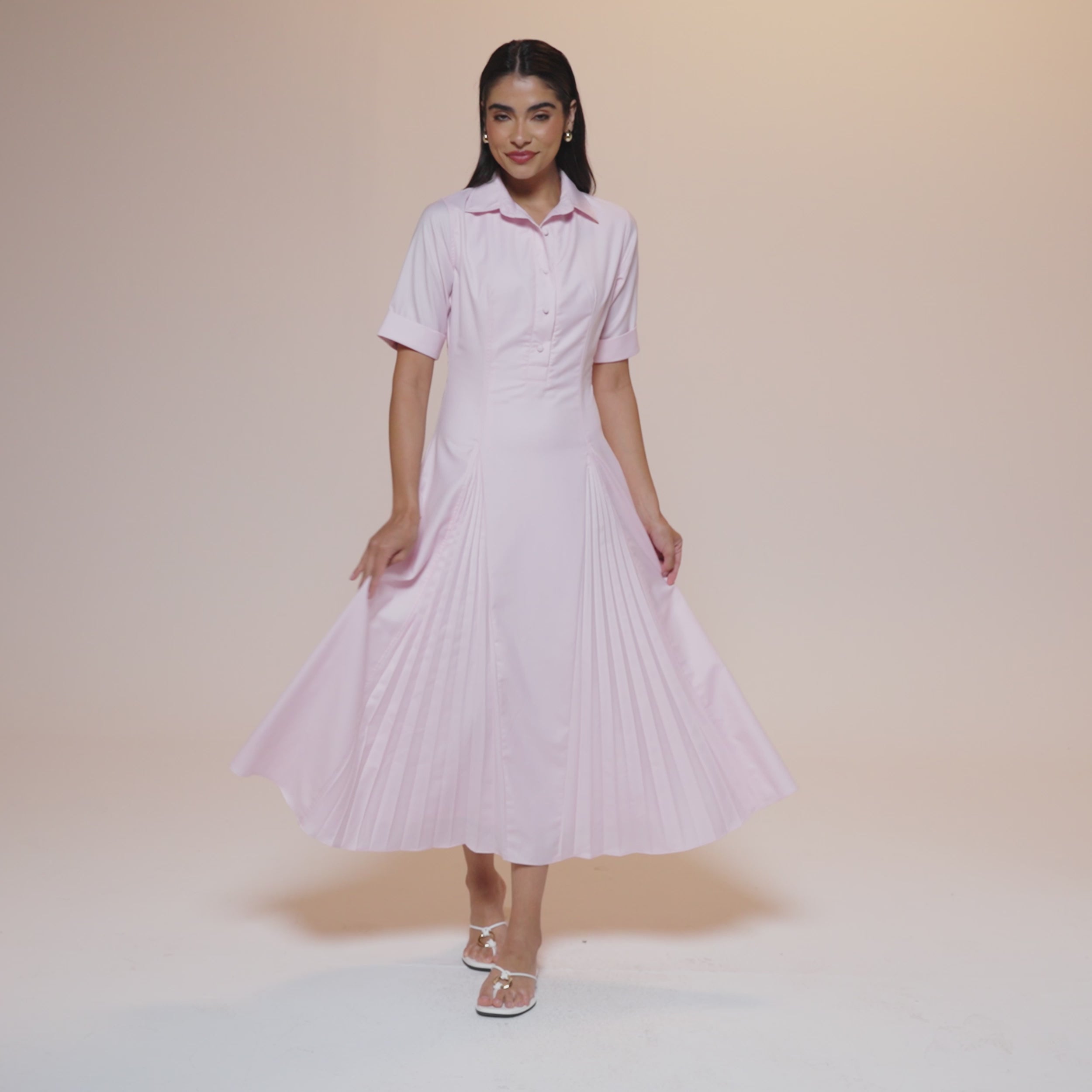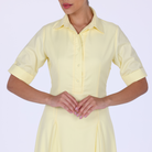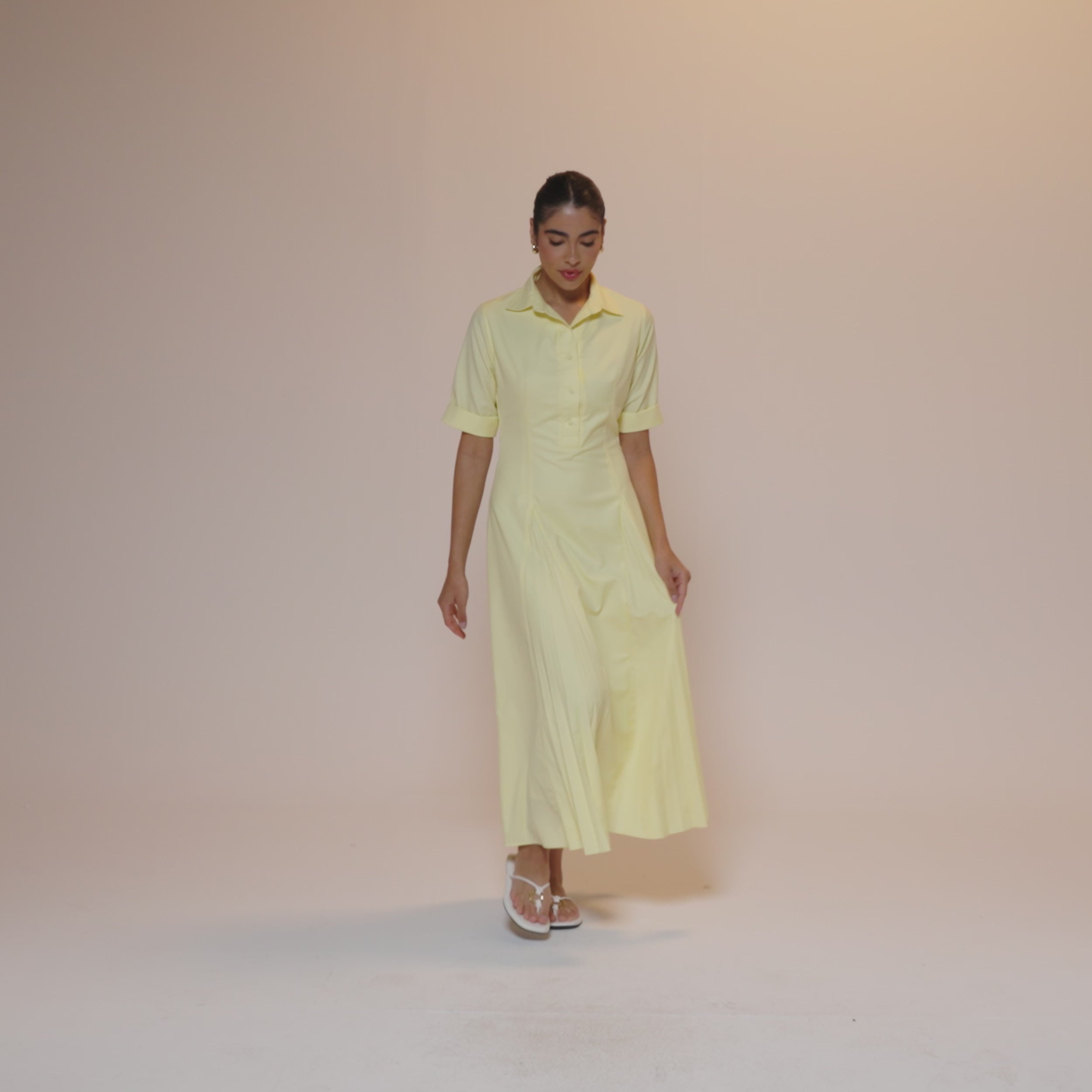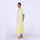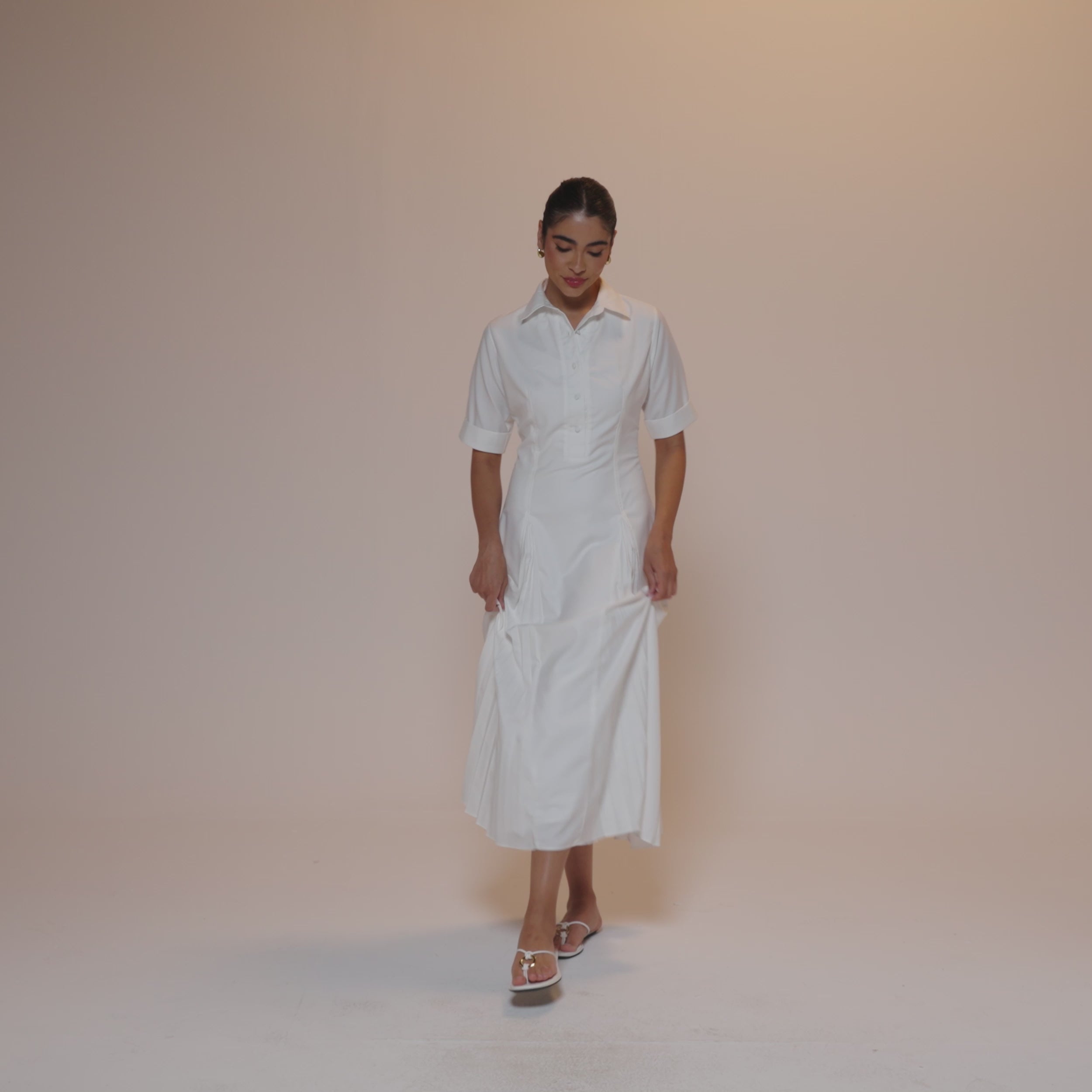 فستان قميص ميدي أبيض من مجموعة صيف الينا 2025. يتميز هذا الفستان المصنوع من البوبلين بتفاصيل خياطة ناعمة، وبتصميم كسرات مع لمسات جوديه تضيف وسعاً وانسيابية تجعل قوامك أنيق ومتناسق.