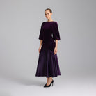 فستان ميدي مخمل مع ستان بأكمام منتفخة