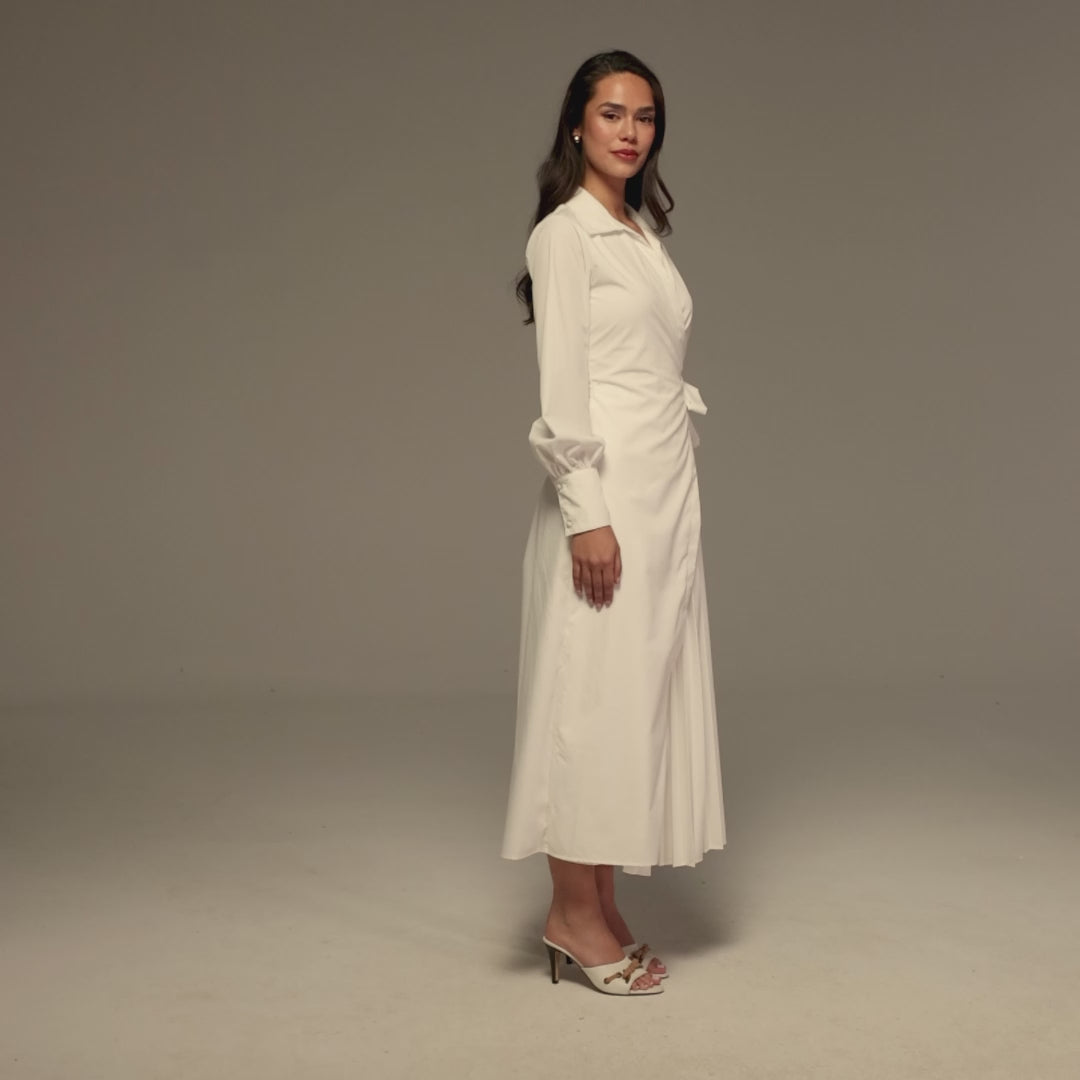 فستان أبيض بوبلين ملتف بكسرات جانبية