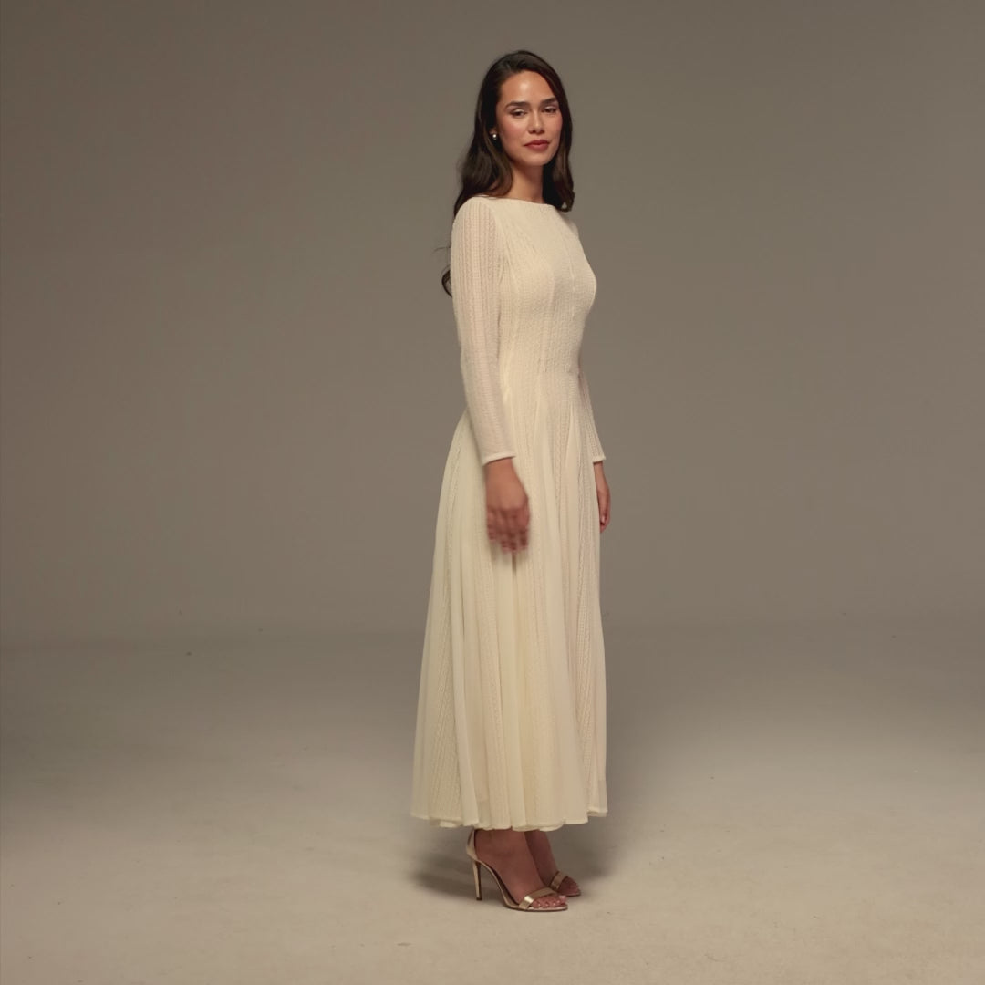 فستان ماكسي بأكمام طويلة وتنورة بكسرات بشكل A