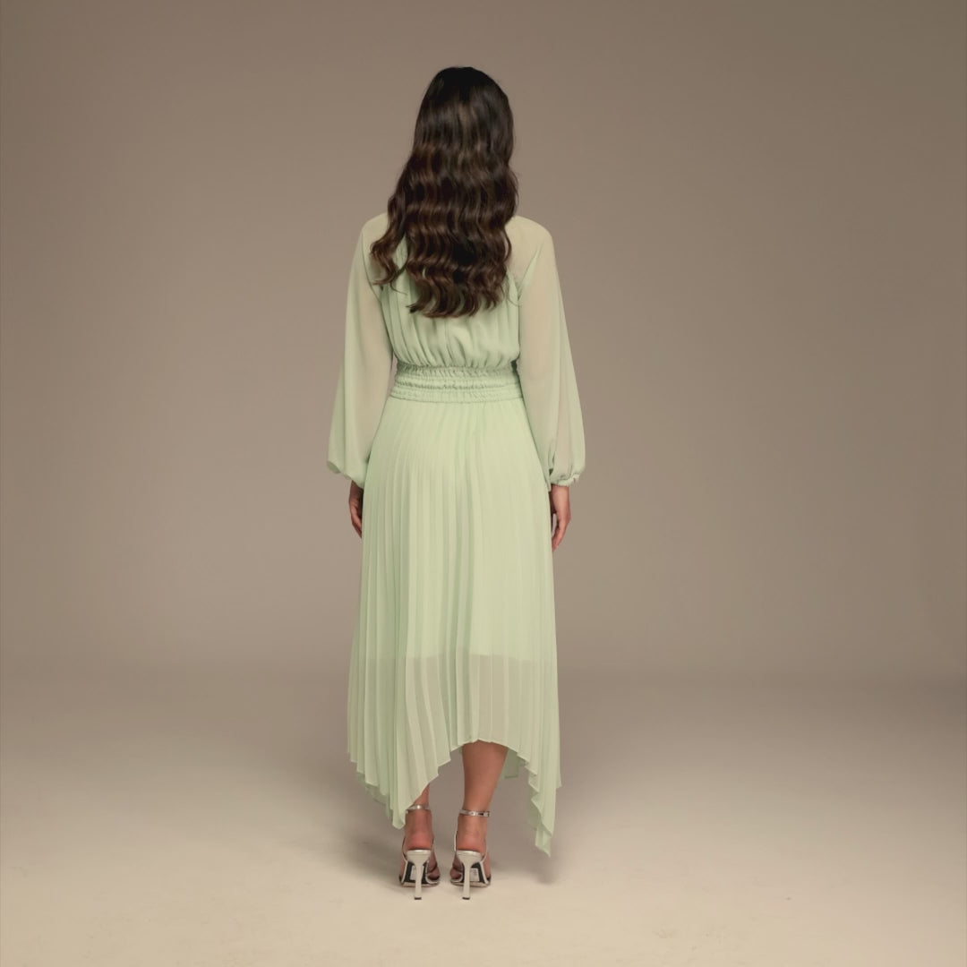 فستان ميدي شيفون أخضر فاتح بليسيه