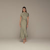 فستان أخضر فاتح ماكسي ساتان بياقة درابيه