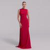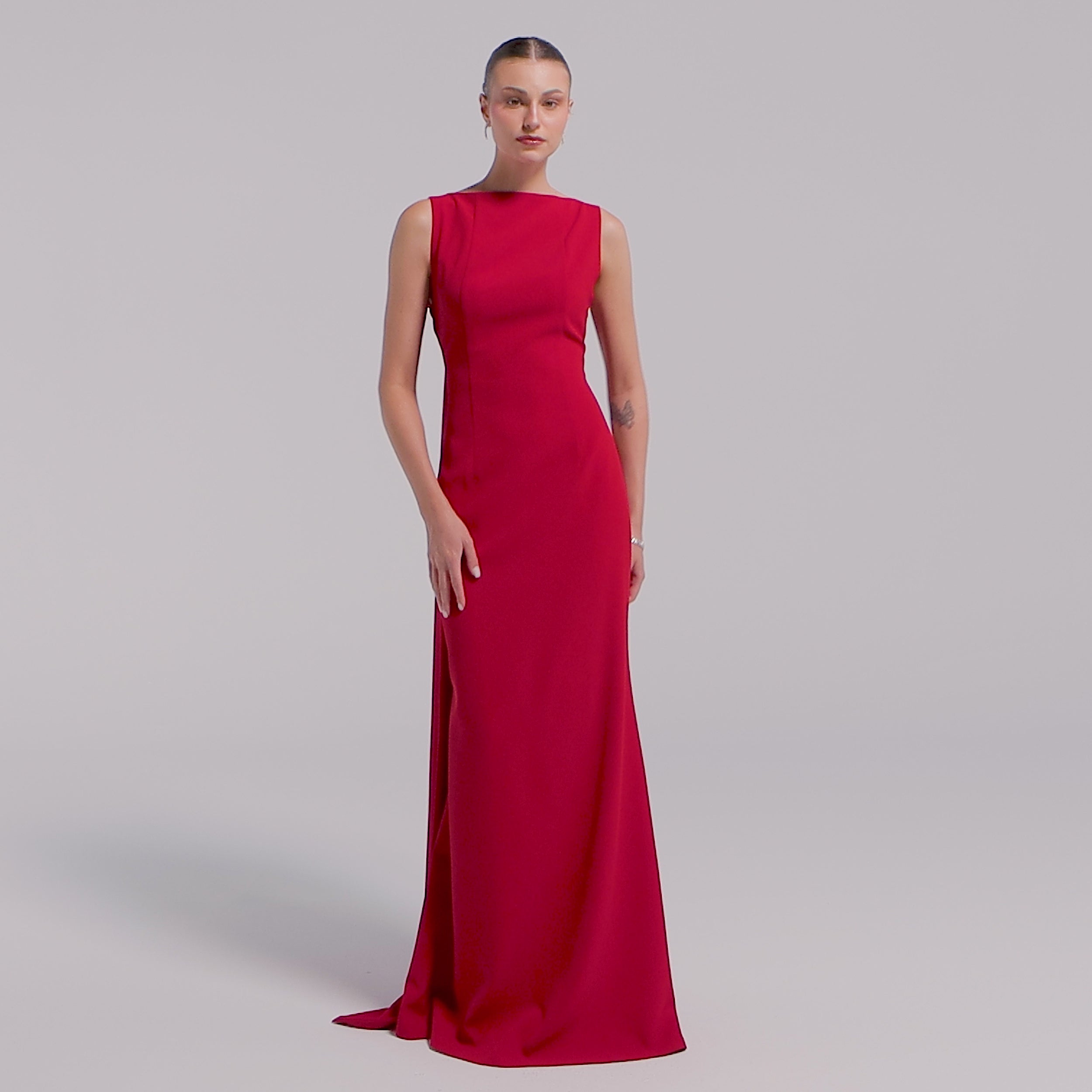 فستان أحمر كريب ماكسي بسكارف خلفي