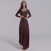فستان بني ماكسي جيرسي بتفاصيل ملتفة على الصدر