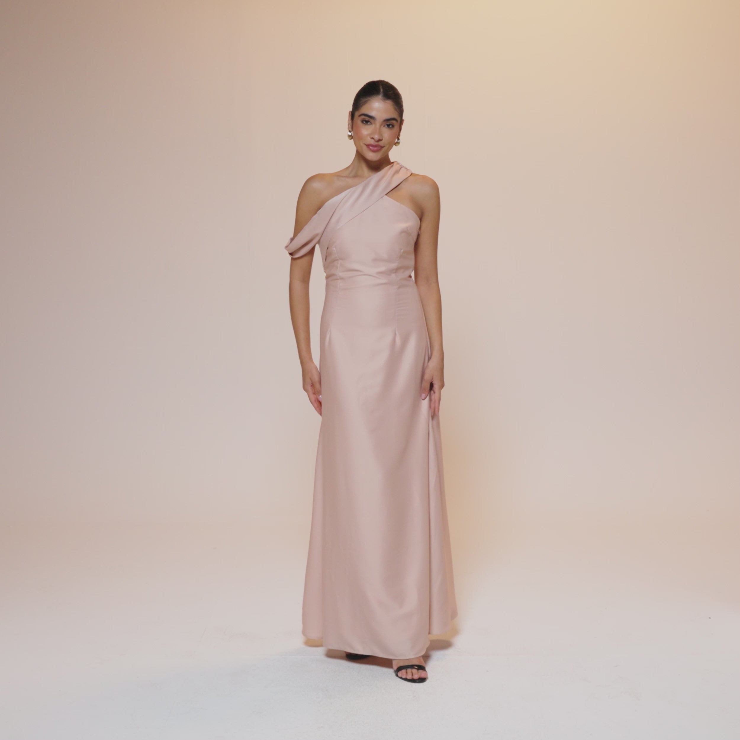 قصة انسيابية بتفصيل مبتكر عند الكتف تمنحك حضورًا أنيقًا دون مجهود. يتميز هذا الفستان بقماش ساتان ناعم وقصة A تنسدل من الخصر لتمنح حرية في الحركة وتوازن بصري مع القصة الضيقة من الأعلى. مثالي للمناسبات الرسمية أو حفلات العشاء، حيث يجمع بين الرقي والراحة.