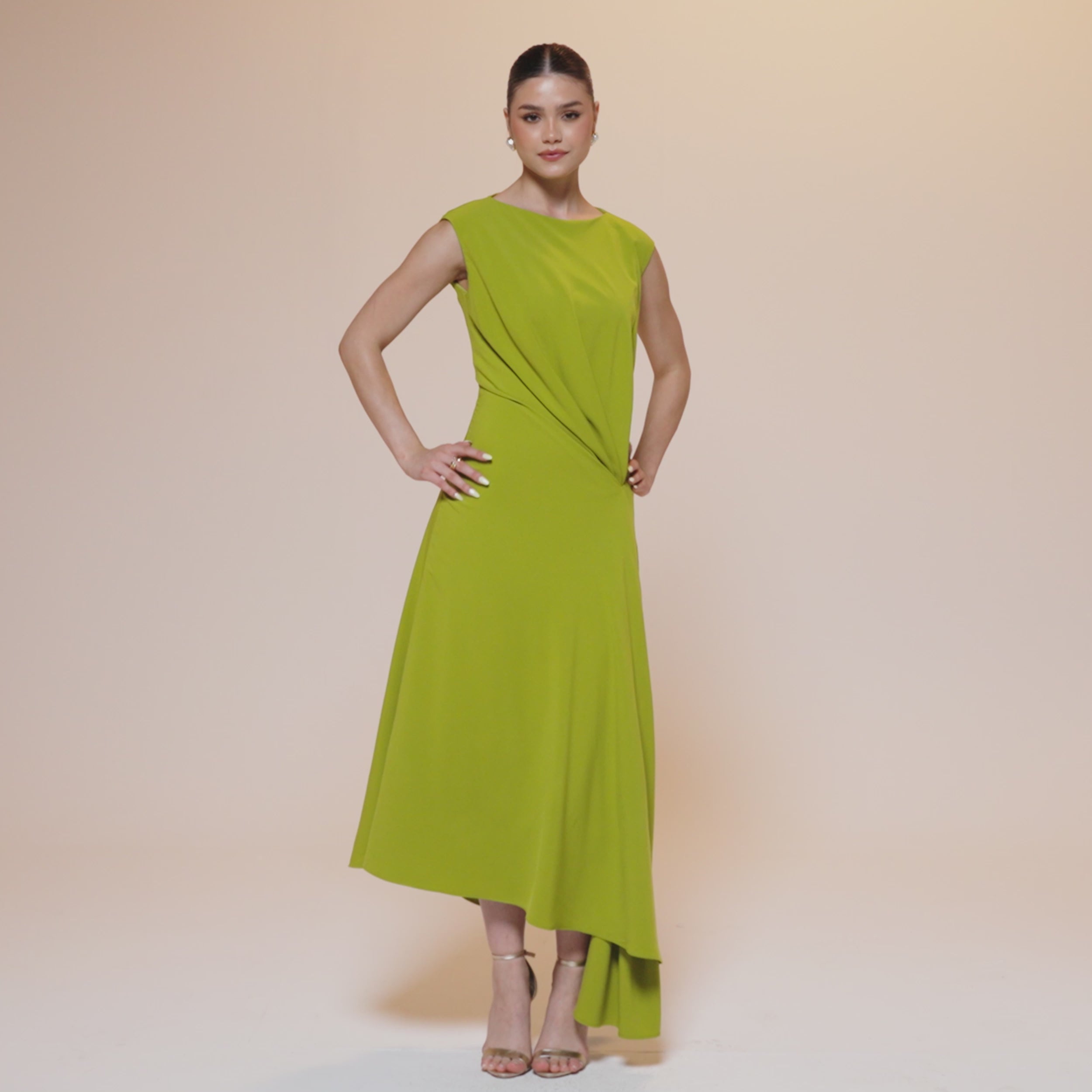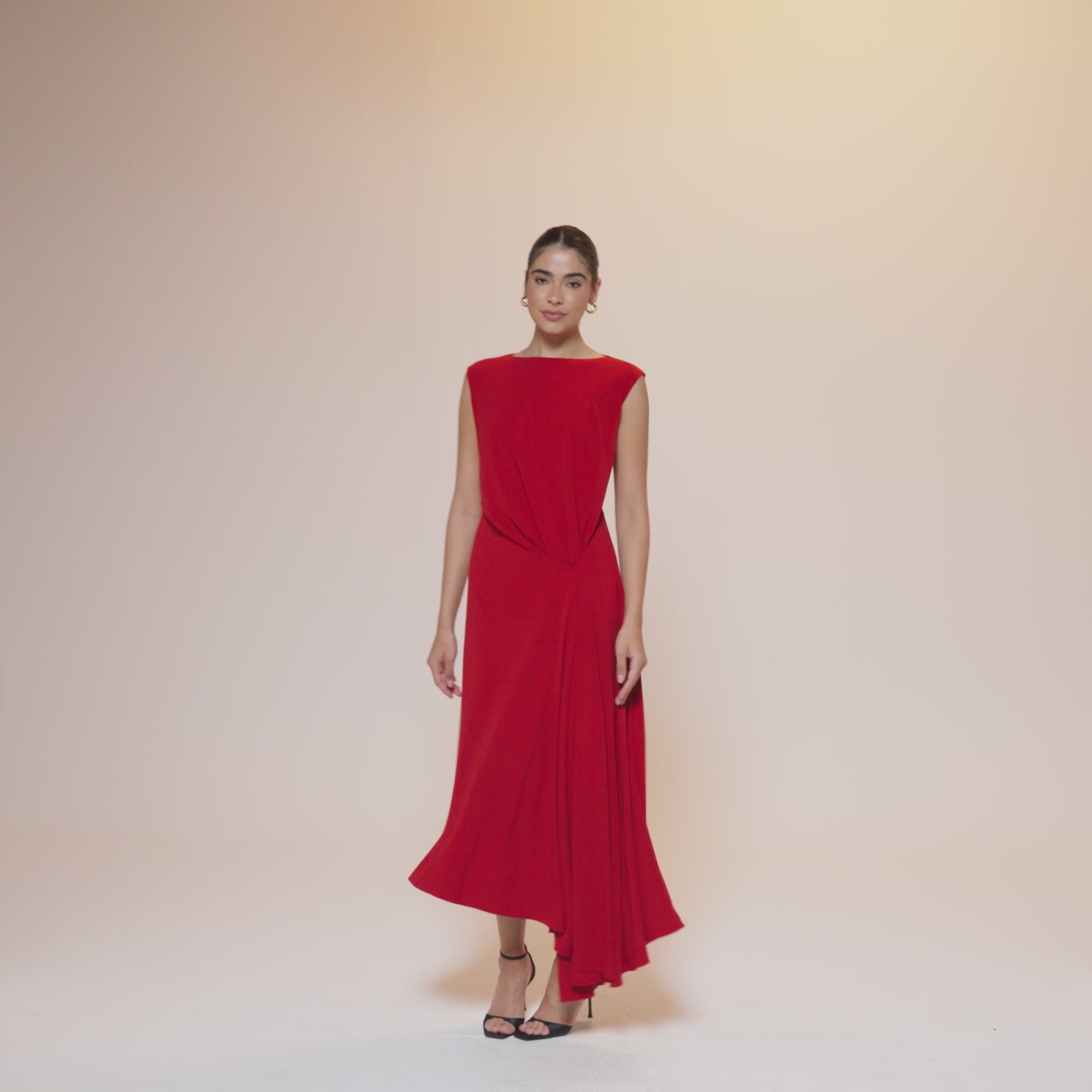 فستان ماكسي من الكريب بقصة غير متماثلة
