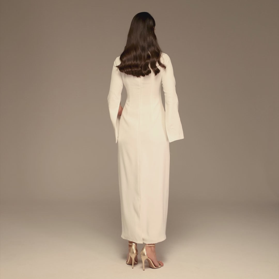 فستان ماكسي بأكمام مطرزة باللون الابيض