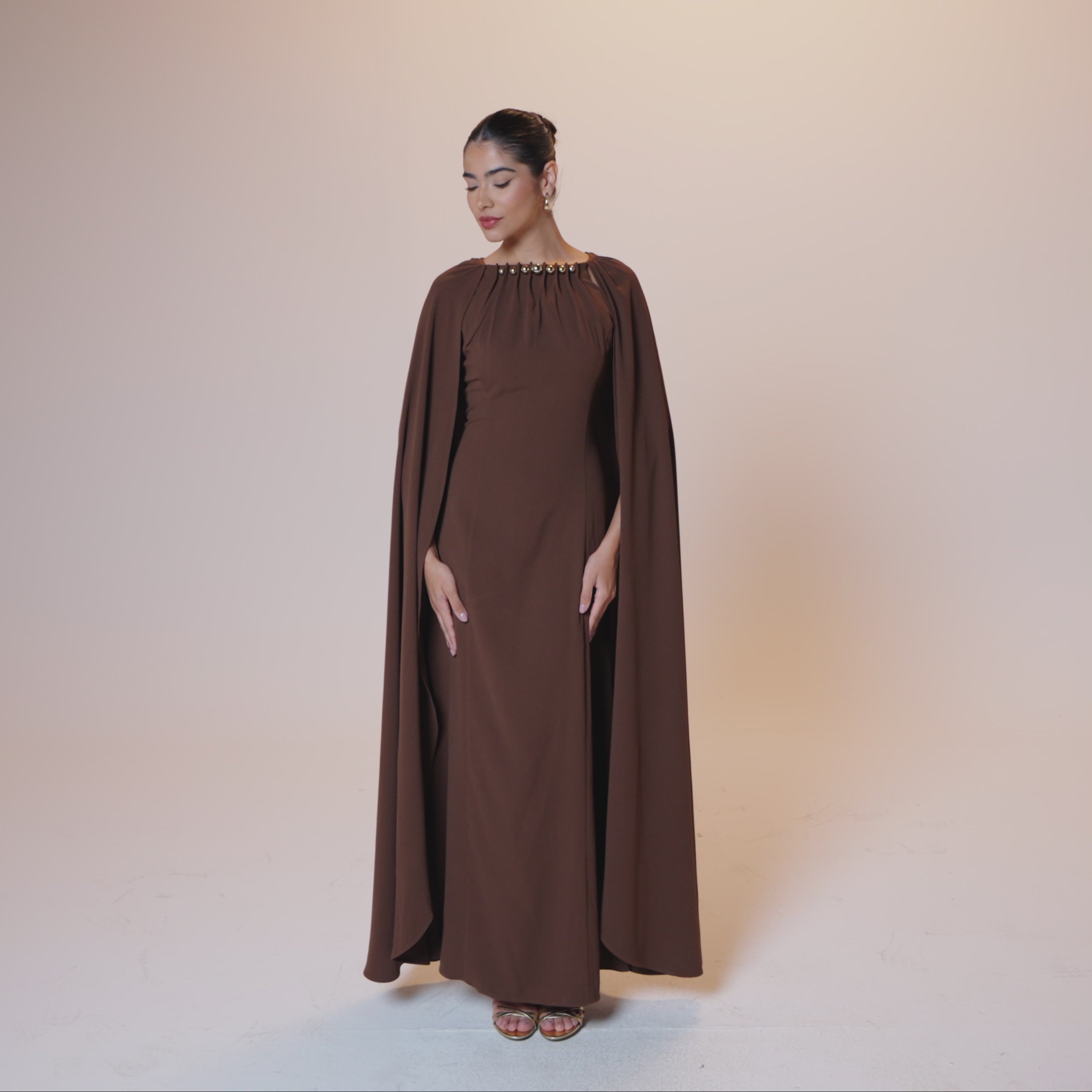 فستان ماكسي كريب كاب بخرز حجر على الرقبة