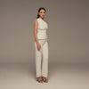 بلوزة كريب بتصميم كتف واحد مع ثنيات ناعمة عند الياقة تبرز جمال منطقة الكتف. صممت البلوزة من قماش كريب ثابت ومريح ليبقى مظهركِ مرتب طوال اليوم.