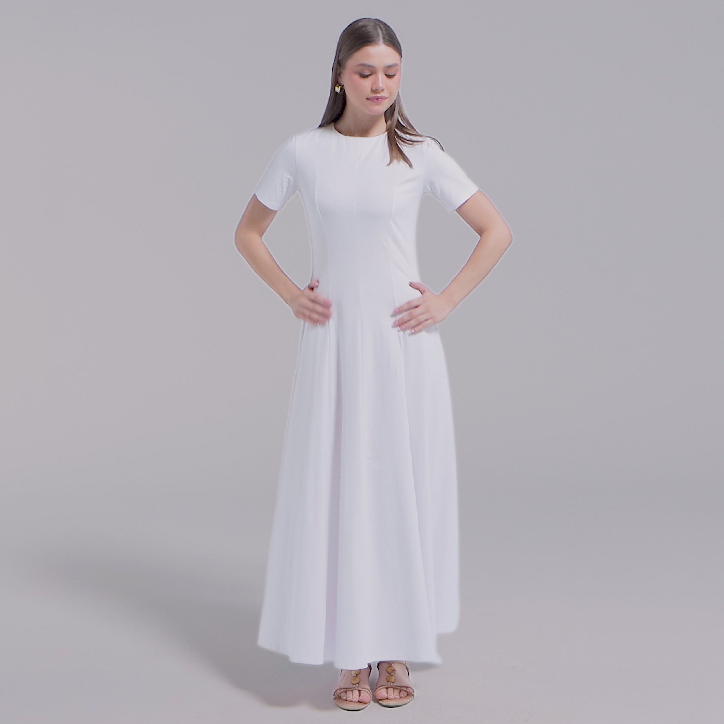 فستان داخلي من قطن مخلوط بتصميم عملي ومريح. يتميز بقماش ناعم بقليل من المرونة يمنح راحة في الحركة مع احتفاظه بالشكل المرتب. يأتي بأكمام قصيرة وقصة محتشمة تناسب الارتداء تحت العباية أو كفستان بسيط في المنزل بكل سهولة وأناقة.
