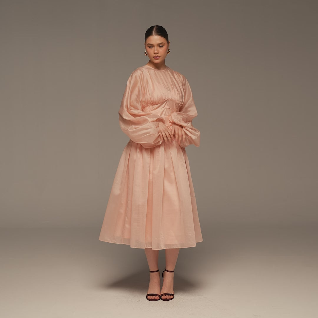فستان وردي أورجانزا بأكمام منفوخة